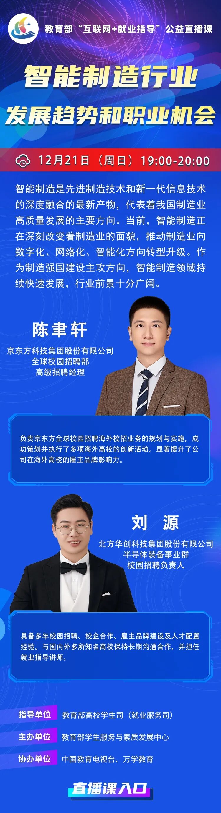 教育部“互联网+就业指导”公益直播课:智能制造行业发展趋势和职业机会